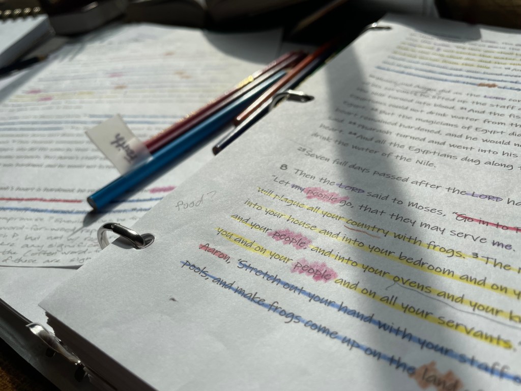 To John’s chagrin, my mom has only enough interest in Greek to have learned one word – kai -the word for “and.” Despite this, she has just as much of a passion and love for the Word as he does. One look at her office – at the colored pencils, coffee cups, and neatly-lettered binder paper scattered throughout – shows the hunger, discipline, and intentionality with which she approaches Scripture. Though the women in my mom’s Bible study group (including me) are drawn to her home by her hospitable spirit, it is not the treats, coffee, or friendly chatter that draw us back each week. Once we all settle ourselves at her enormous, walnut dining room table, it is my mom’s commitment and diligence to intensive study of Scripture that encourage the rest of us to dive ever more deeply into the Word. My mom never flounders in her thoughtful and slow investigation of God’s Word, but instead abides in the Lord’s sanctuary with a posture of peace and humility. The awe my mom lays at God’s feet causes others’ love for him to increase. These wrapping-paperless gifts suit a King in a manger far more than gold or incense.